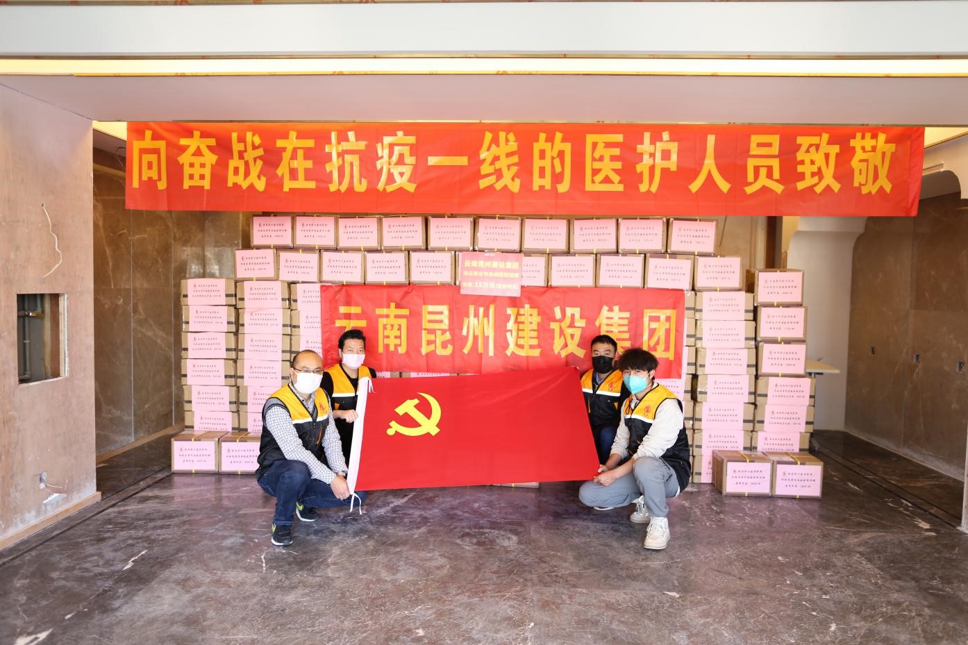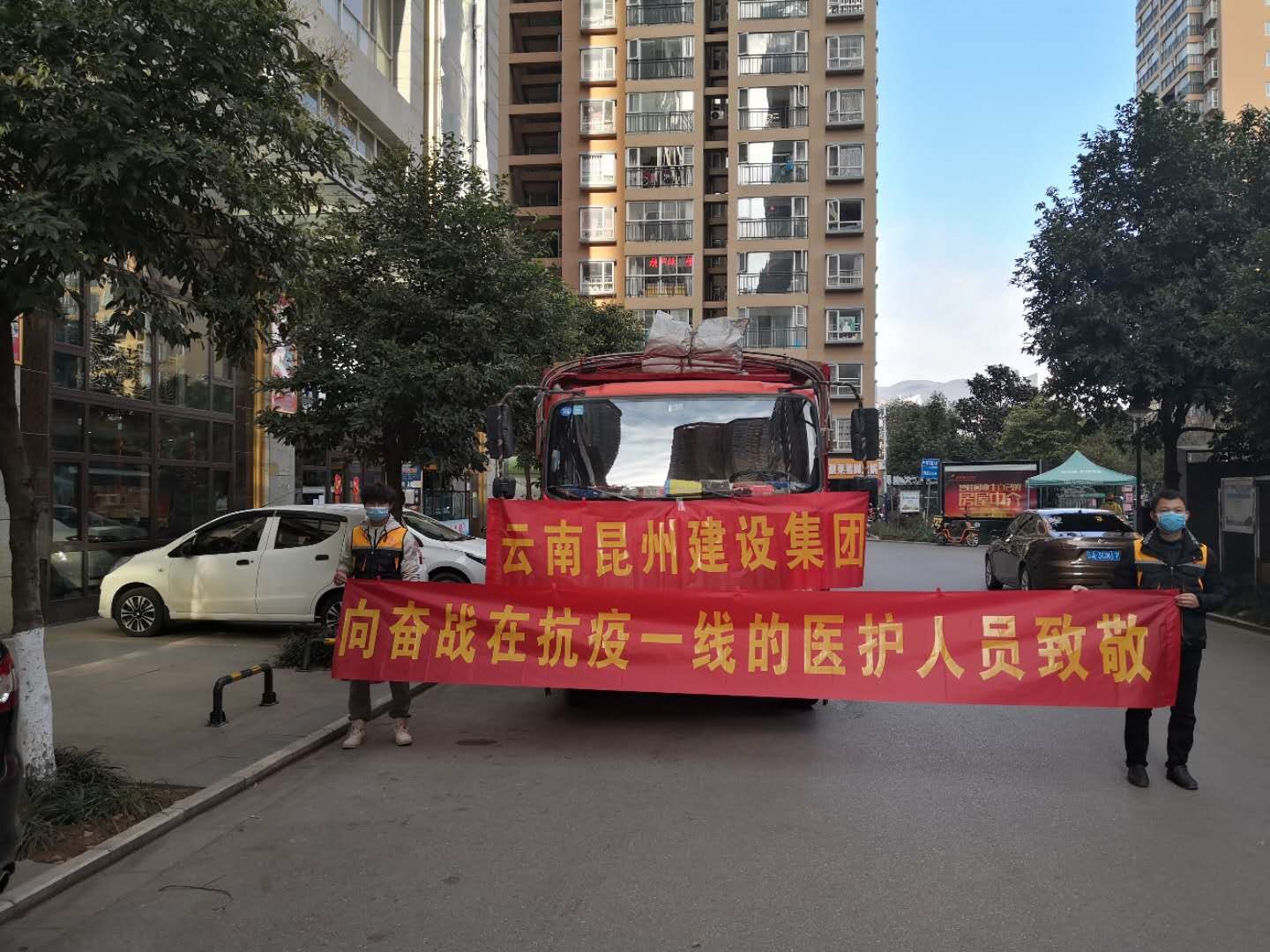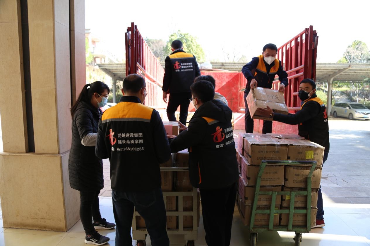 2月14日上午9:30,昆州集團員工代表出發(fā),向云南省傳染病醫(yī)院運送物資。