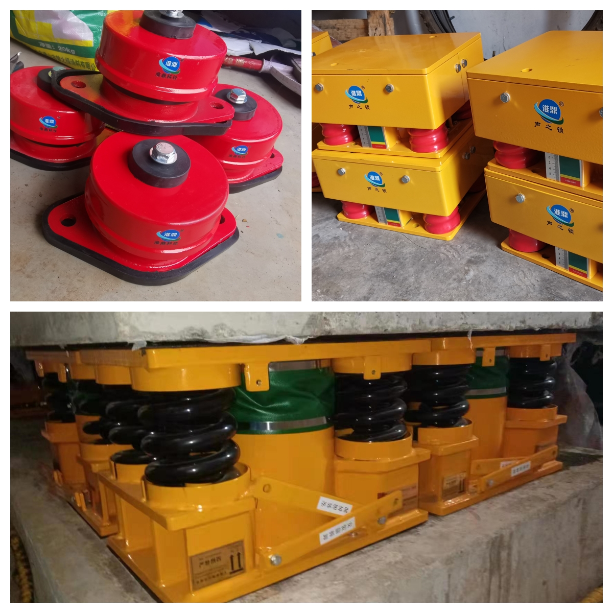 隔振器:頻率低于 6Hz的低頻靜音減振器??蛇x大撓度(不低于 50mm)低頻彈簧減振器配合天然膠墊安裝或者加裝空氣彈簧減振器。因是改造項目,彈簧減振器高度過大,不適合安裝,所以設(shè)計安裝超低頻靜音系列的空氣彈簧減振器、橡膠減震器、部分鋼彈簧減震器等其他減振產(chǎn)品配合使用。隔振降噪原理:空氣是振動和噪音的不良導(dǎo)體,用隔振手段把設(shè)備與樓板隔離開,由剛性連接轉(zhuǎn)換成軟性連接,中斷振動傳播途徑。 設(shè)計隔振效率:90%。 隔振效果:安裝后整個隔振體系的自振頻率達到 3Hz以下,低頻振動及因低頻振動產(chǎn)生的噪音基本消除。